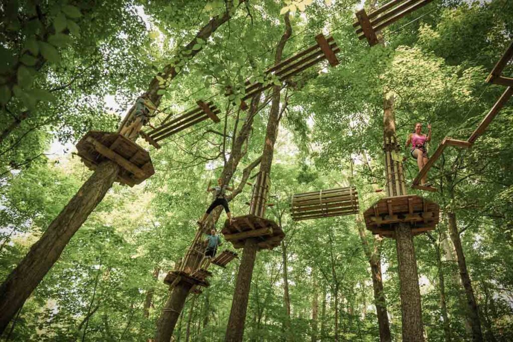 Multi-level circuits of obstacles and ziplines designed for guests of all ages and abilities.